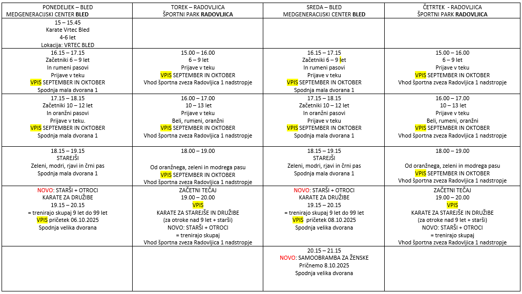 - Zimski karate kamp v Gozd Martuljku je predviden od 19. do 21. decembra 2025.
